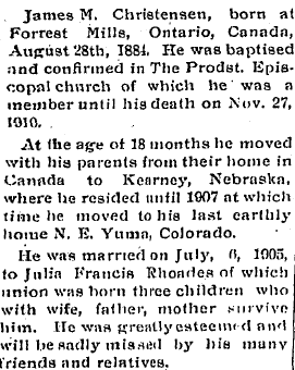 October 1910 "James Christensen and Mrs. Rhoades made a good start for Sunday