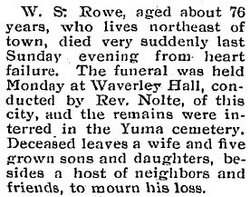 The 1900 Kearney, Nebraska census has William S. Rowe, 64, Mary P, 61,
