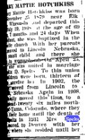 April 1909 "Mr. and Mrs. George Hotchkiss of Lincoln, Nebraska who have been making Mrs. Hotchkiss' brother, F.B. Spelts living near Yuma, a ten days visit, wanted to see the county seat and came down Monday on 16 and were passengers on 14 to their eastern home the same evening."