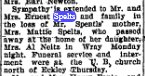 April 29, 1910 "The little eight year old daughter of Mrs. and Mrs. F.D. Spelts died last Friday after a short sickness of one week. She was buried Sunday, Rev. York preaching the service