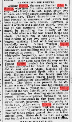 In 1880 Jackson County, Indiana are John R. Spelts, 35, Martha A. 29, William E. 8, Felix D. 7, Geo. S. 4, and Willis C. 1