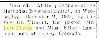 1893 Akron "The petition of Cyrus H. Phelps, a Past Commander of De Payen's Commandery No. 6, Oskaloosa, Iowa, now a member of Akron Commandery No* 21, for membership in this Grand Commandery, was presented and referred to Sir Knights A. SAGENDORF, 8. A. 8HEPPERD, L. N. G BEEN LEAF. The Committee afterwards presented their report, and he was duly elected. August 1897 Akron "Mrs. Lottie Phelps returned home from Denver this week. November 25, 1898 "Bert Phelps, of Brush, was in Akron yesterday." Albert F. Phelps and Charlotte Phelps divorced in Washington County, Colorado in 1898. Cyrus born June 1844 in New York, widowed, and Albert August 1870 in Iowa, single, are lumber dealers in 1900 Fort Morgan. 1902 Greeley, Colorado THIS IS A DIFFERENT ONE
