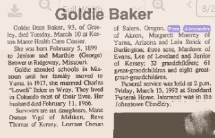 Charles Lowell Baker registered in Yuma County, farming, born October 26, 1897, in Ridgeway, Missouri - father born in Bethany, Missouri., and was married to Goldie Baker. (Jennison and Martha Brower's daughter)