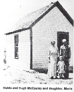 Hugh's two uncles, Ed and Con McCoale, homesteaded joining the McCauley land. October 1913 "Hugh McCauley had two carpenters, Art Howard and Ed M. Cole, a couple of days last week, improving his house." Hugh J. McCauley registered in Yuma County, born Dec 17, 1884, nearest relative Hulda Louise McCauley. In 1920 Mildred precinct Hugh is 36, born in Pennsylvania, parents born in Ireland. Hulda is 29, born in Kansas, and they have Marie 9, Susanna 6, Clarence 3, and Hugh ten months. All four kids were born in Nebraska, so maybe Hulda was living back in Hastings ??? In 1930 Mildred precinct they have Susanna L., Clarance W., Hugh P, Pauline E. 8, and Arthur M. 5. In 1940 Mildred precinct they have only Hugh 20 and Melvin 9. Hulda L. Flach McCauley, daughter of Frederick and Bertha FLACH (Flack) Hugh and Hulda retired to Fort Collins in 1949. Hugh died in