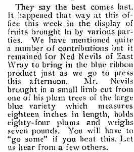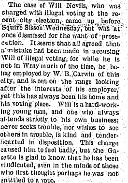 1910 "Ned Nevils left on No. 13 Monday morning in response to a telegram stating that his sister living at Albuquerque, New Mexico was dead."
