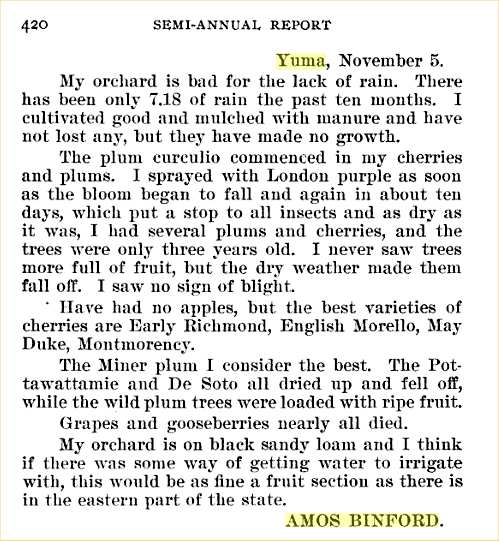 1890 Yuma "Mr. and Mrs. Amos Binford rejoiced over the advent of an eight-pound boy."