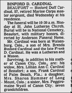 Berda B. Cardinal -per SSDI - was born Aug 30, 1898 and died Mar 17, 1988, last address Canon City.