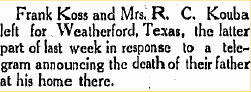 1915 "Joe Kouba called on C.B. Davis Thursday.