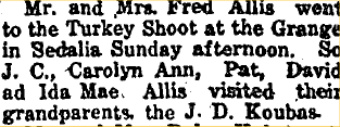 1959 Castle Rock "Rube Kouba of Pueblo came last Thursday to visit his brother, J.D. Kouba and family."