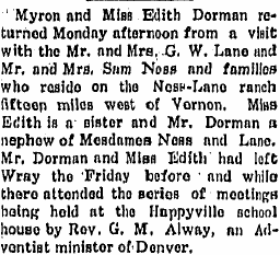 Wray items September 8, 1905