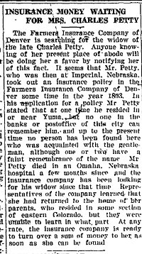 Millie C. Hand married Charles Petty December 21, 1918, recorded in Washington County.