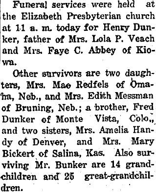 Faye Dunker married Lester Abbey Dec 12, 1927