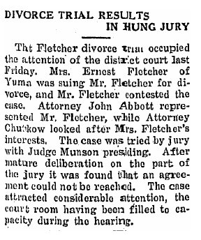 Ernest W. Fletcher divorced Lilian E. Fletcher in Yuma in 1909.
