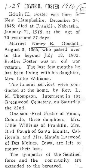 and Edwin H. Foster/Forster 1845-1916 with an obituary.