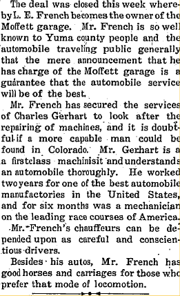 Also in 1913, the Yuma city water fund paid C.M Gerhard $5.60 labor.