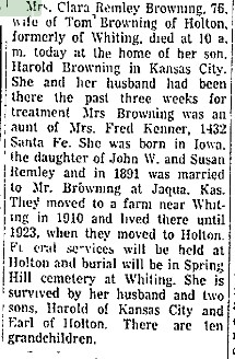 John died April 16, 1896 and is buried in Saint Francis # 115167068 "Parents John Harrison Remley and Ann McPherson C. Hogshead. John married Susan Cook March 29, 1866 in Williamsburg, Iowa Co., Iowa. Children Anna May Remley Goerke Martin (d. 1945), Mary Isabel Remley Thompson (d. 1931), Clara Elizabeth Remley Browning (d. 1947), Charles Remley (d. 1874), and Florence Remley (d. 1877)."Anna died in 1908 - "Miss Mabel Thompson of Colorado, whose operation for appendicitis last Thursday afternoon was briefly mentioned in our last issue, died from septicemia at the home of Mr. and Mrs. Jacob Wiest in this city about 1 o'clock Monday afternoon. The body was at once taken to the family home in Colorado, whence the remains were interred in the Armel cemetery on Tuesday. Miss Thompson was very popular in her home neighborhood and a large concourse of sorrowing friends followed the remains to their final resting place. The sympathy of all is extended to the bereaved parents in this hour of their deep affliction." Source: The St. Francis Herald, March 26, 1908, page 5" Henry H. Thompson timber-claimed a quarter in 8, 4S 42W in 1899 and proved up one in 1906.Susan proved up 160 acres in section 8 and 9 in 1906.