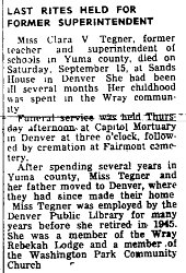 1912 Wray "Harry Tegner of Akron was in Wray transacting business and visiting relatives."