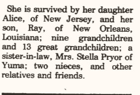 a son, Gordon Dale Pryor; his mother, Mrs. Stella Pryor of Yuma;