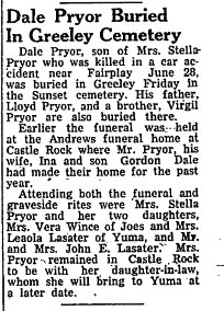 July 2, 1953 Greeley "Graveside services for Dale D. Pryor, 38,