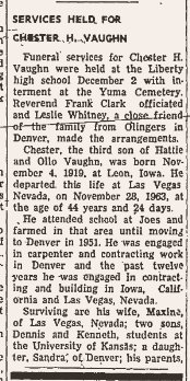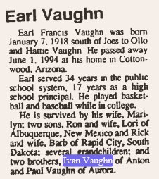 Francis Earl Vaughn, b. January/07/1918, KIRK COLORADO, d. June/01/1994 Cottonwood Arizona