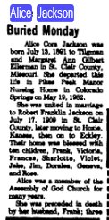 Mary is buried in Grand Junction "Mrs. Mary Gilbert, 77, of 2939 Orchard Avenue, a resident of Grand Junction for 33 years, died at 12:50 a.m. today in Medicenter. She had been in ill health for five years.