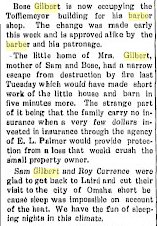 May 1914 " Bose Gilbert has moved his barber shop to the Laird hotel where the cleanest