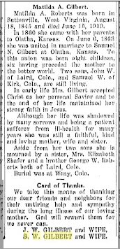 Because the Gilberts were at a wedding in 1901 Laird, Matilda must be related to the Rufus F. Roberts family - who were also in Washington County, Kansas in 1880, and Johnson Count i Kansas in 19900.