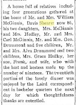 Davis Shearer is in Laird precinct in 1910, 81, with daughter Susan M. McGinnis 54 and her husband William E. 66.