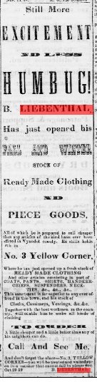 In 1864 B. Liebenthal is in business in Sandusky, Ohio.