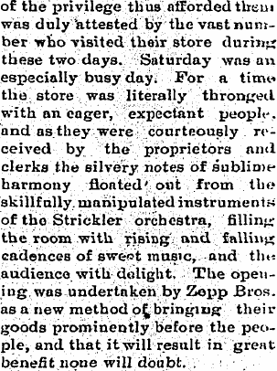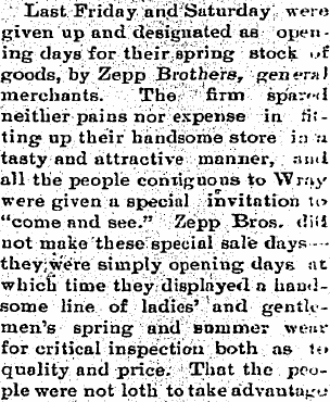 In 1903 Wray the Zepp Bros were advertising clothing at their store.
