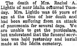 In 1910 Idalia William S. Lightle is 65, Ohio, married to Mandy 59, Missouri