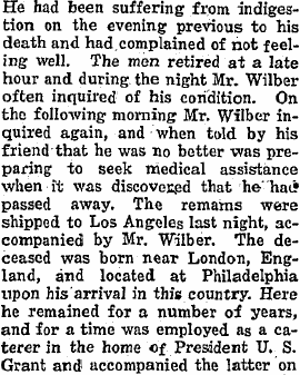 If James' story about catering in Ulysses S. Grant's home when Grant was living there - it would have been only a few months in 1877 in Philadelphia. Maybe he worked there after 1877 for another occupant.