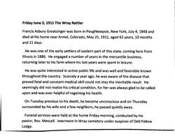1909 Armel items "Messrs. Frank Wasson and F.A. Greatsinger transacted business in St. Francis Saturday."