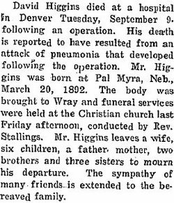 1917 "Mrs. Ora Long and two children of Boise City, Idaho, stopped off in Wray from Saturday until Sunday for a short visit