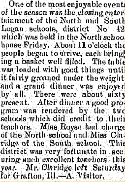 1905 "Floyd Crites spent Sunday with his sister, Mrs. Paul Claridge."