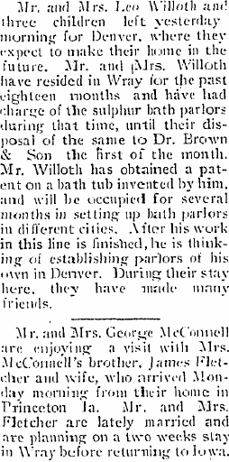 1919 "Frank Fletcher who makes his home with Charles Goodman, returned Saturday from Denver where he had been visiting his mother for the last two weeks."