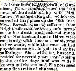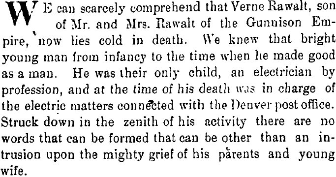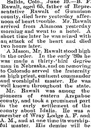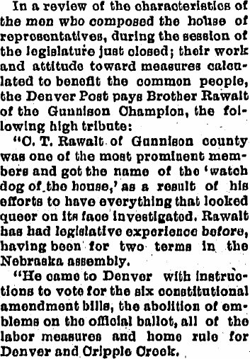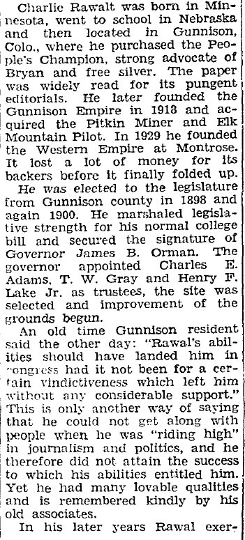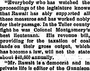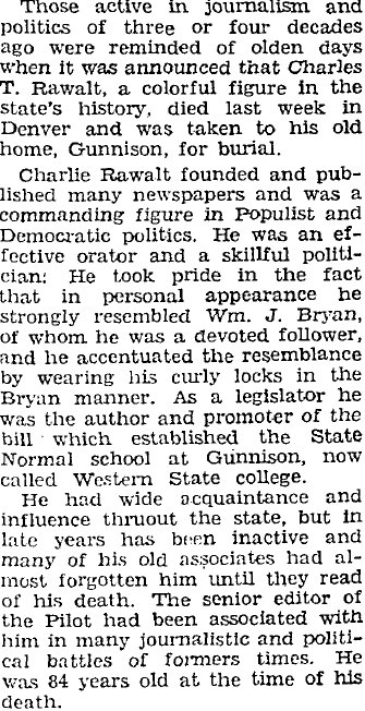In 1895 another newspaper mentioned "Bro. Rawalt, of the Gunnison News"