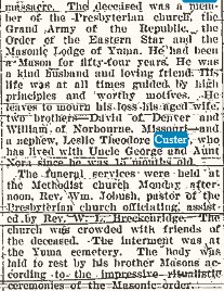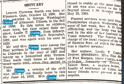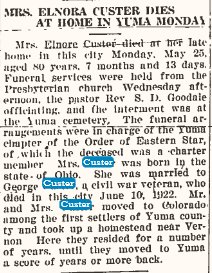 George Washington Custer -1847-1922 is buried in Yuma, as is Elnora Theressa (Smith) Custer 1850-1931.