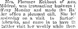 Kearney Nebraska 1907 "Miss Florence Eckhout is working for Mrs. Henry Hartman." " Charles and Matilda Eckhout attended the dance at William Krugon's Saturday night"