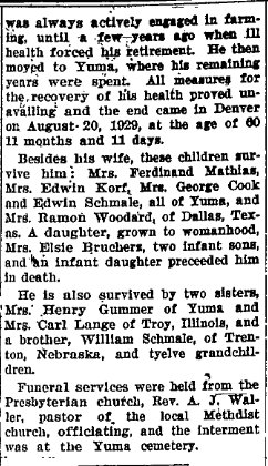 In 1930 Yuma Elizabeth G, 62, is widowed, and Edwin 20 and grandson Harold 10 are with her.