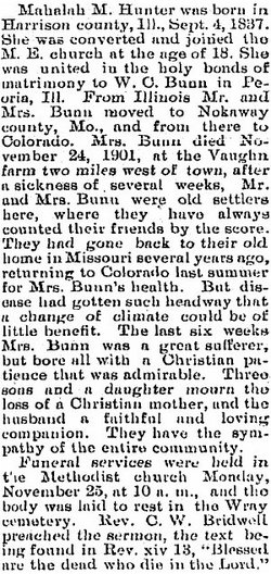 Peter A. Bunn - Jun 22, 1864 - May 6, 1919 is in the Wray cemetery
