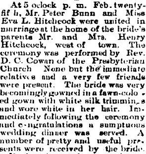 In 1919 Eva L. Bunn was one of the many heirs of "William Henry Hitchcock, deceased."