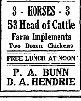 1902 Robb " County Surveyer Isaac R. Hendrie is having a well drilled on his place. Peter Bunn is doing the work. It is being well drilled."