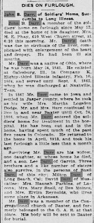 James L. Logsdon was born September 27, 1818 in Kentucky. His parents were William J. Logsdon, Sr. (b. 1799 KY – 1867 Baxter and m. 1816 KY) and Martha Sego. He was married in 1836 to Mary “Polly” Harper. James died June 1901 at Baxter, Iowa and was buried at the Independence Cemetery in Independence Township, Jasper County, Iowa. Mary Harper was born February 16, 1819 in Kentucky and died February 2, 1892 at Baxter and was buried at the Independence Cemetery in Independence Township, Jasper County, Iowa. James and Mary had 14 children: |