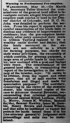 Elijah's claim was next to James A. Weldon's claim, also in 1882. A mile east was Henry Brown's 1882 claim. Four miles east, still on the creek, was Samuel Snyder's 1882 claim, Philip L. Murray's 1882 claim, James Wilson's and I. N.Gamble ( Isaac M. Gamble in the newspaper article.) Samuel Hawley's was further east, still on the creek, two miles from Wray.