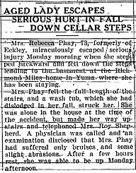 May 27, 2002 Anna Donaldson, 96, of Colfax died of pneumonia Thursday at Clearview Manor in Prairie City. Services will be at 10:30 a.m. Tuesday at First Baptist Church in Colfax, of which she was a member. Burial will be at McKeever Cemetery in Colfax. Mrs. Donaldson was born in Oswalt and had lived in Colfax all her life. She had worked at Vernon Company in Newton before retiring. She is survived by a daughter, Betty Gil-reath of Mesa, Ariz.; a sister, Elizabeth Ing-lis of Baxter; two grandchildren; and a great-grandchild. She was preceded in death by her husband, Phay. Friends may call after 4 p.m. today at Walters Coburn Funeral Home in Colfax, where the family will be present from 6:30 to 8 p.m. Memorial contributions may be made to her church. ----------------------------------------------------- Gladys Gail Nichol was born on February 21, 1915 in Murray, Iowa, the daughter of David and Jennie (Phay) Donaldson. She was raised in the Colfax area. Gladys was united in marriage to Walter Van Nichol on June 16, 1934 at her parent's house in Colfax. The couple moved many times before finally settling in Knoxville in 1961. She began working at Collins Hospital as a nurse aid, a job she held for 26 years, and retired at the age of 70. Walter passed away in 1995. Gladys was active in the Garden Club. She enjoyed playing cards and having neighbors and friends over to visit. She was also a wonderful cook and had many requests for her apple pies. Most of all, she loved her family and looked forward to seeing her grandchildren. Gladys passed away Monday, November 7, 2011 at Griffin Nursing Center in Knoxville at the age of 96 years. She was preceded in death by her parents; husband, Walter; infant daughter, Beverly; sons, Walter Dale and James Ray Nichol; granddaughter, Jennifer Nichol; great-grandson, Joel Minnihan; and siblings, Clifford Donaldson, Frances Miller and Phay Donaldson. Those left to cherish her memory include her son, Jerry (Patty) Nichol of Knoxville; grandchildren, Pam Nichol, Julie Minnihan, Andy Nichol, Robin Shemanski, Cathy Meritt, John Nichol, ZoAnn Thompson, Neil Nichol and Beverly Michelsen; great-grandchildren, Jeremy Manser, Amy Shemanski, Nikki Figland, Kayla and Jacob Nichol, Brenna and Seth Meritt, James Thompson, Kelli Hanson, Haley and Caitlin Nichol and Cody Michelsen; great-great-grandchildren, Madison Hammen, Aubrey Hanson and Angel and Abigale Hawkins; daughters-in-law, Barb Nichol and Carole Nichol; sisters-in-law, Irene Bartholomew, Doris Nichol and Marylou Nichol; and many nieces, nephews and friends. A funeral service will be held on Friday, November 11, 2011 at 11 a.m. at Williams Funeral Home in Knoxville. The family will greet friends from 9:30 a.m. until the time of the service. Burial will be in McKeever Cemetery in rural Colfax at 2 p.m. on Friday. |