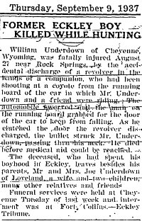 December 1936 "William Underdown, a long time resident of the Eckley community died at a hospital in Loveland Sunday."