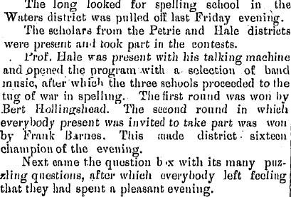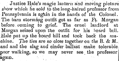 1901 "Pro. Hale gave an entertainment at Eckley Thursday night."