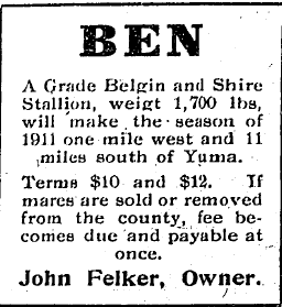 May 18, 1906 F.F. Felker, of Trenton, Nebraska, arrived with a car of goods Wednesday and will become a resident of Yuma County.