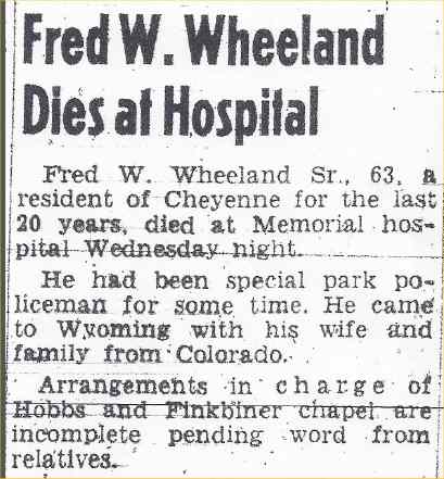 Frederic W. Wheeland, born Mar 15, 1922, died Oct 19,1977 in Orange County, California.